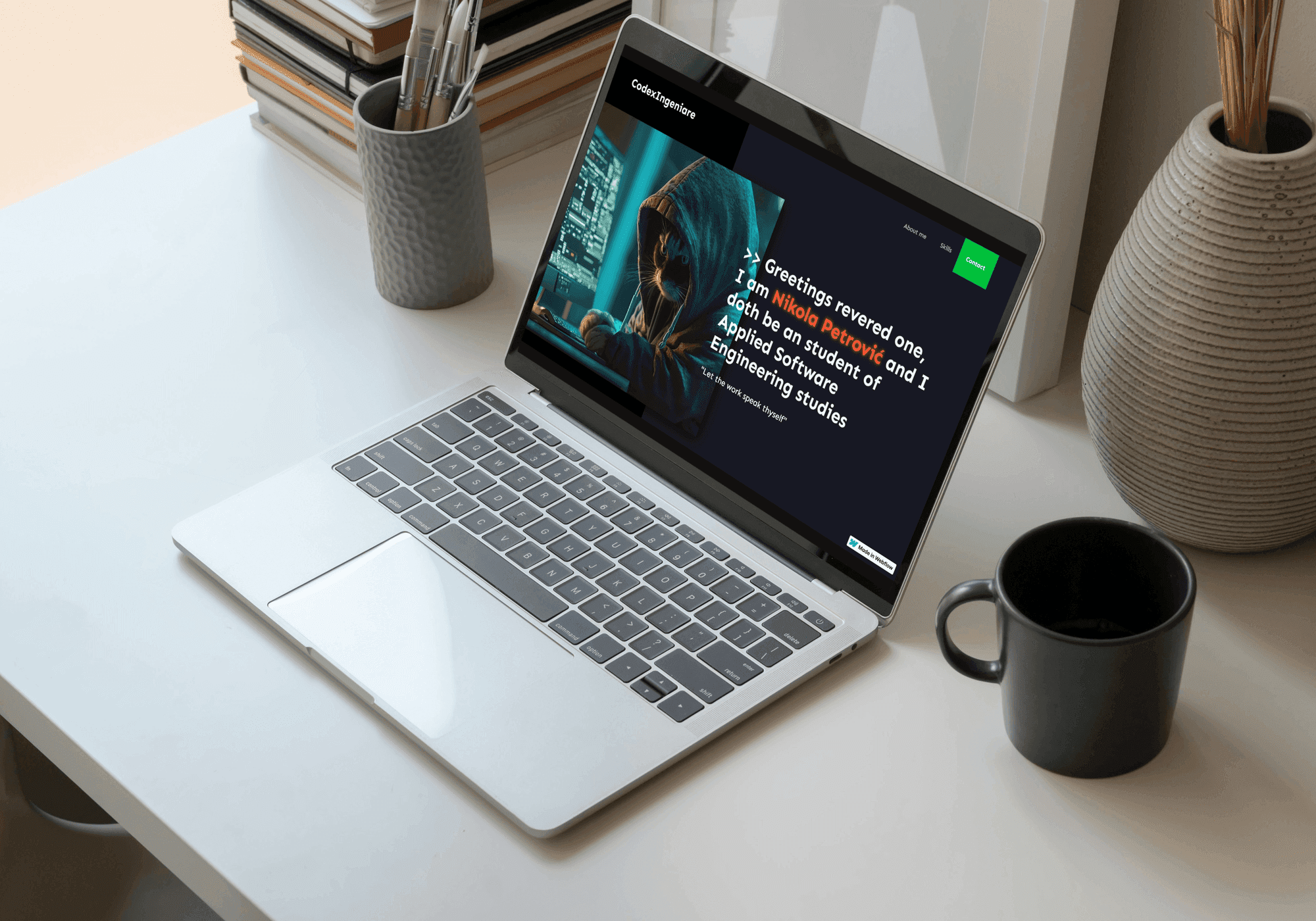 This portfolio website showcases Codex Ingeniare‘s work and services in a visually stunning and professional way. Through a combination of modern design techniques, animations (via Typer.js), and a mobile-first approach, the portfolio offers an engaging experience to users on all devices.